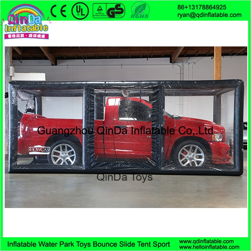 The inflatable bubble car cave tent is a clear vinyl chamber that seals your car, truck or boat completely away from the elements. Dust, dirt, condensation, even insects and prying fingers are locked out. The lower section and roof area are made from heavy duty oxford nylon and is impervious to oil, petrol, etc. Although we do recommend a sheet of plastic or drip tray under the vehicle if it leaks oil etc.
